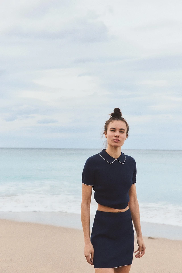 CONTRASTING PIPING KNIT MIDI SKIRT