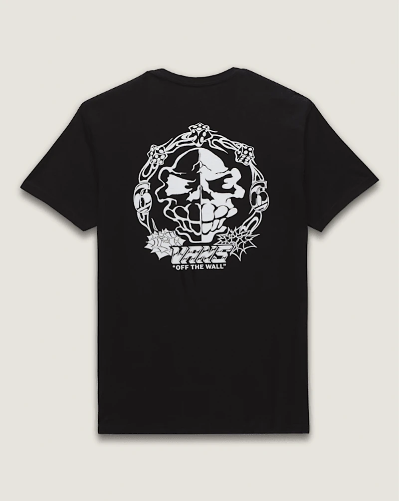 Be a little devious in the Mister Sinister T-Shirt, a classic fit short sleeve crew neck T-shirt with screenprinted graphics of a Vans® logo on the front, and an ominous skull atop the Vans logo on the back.