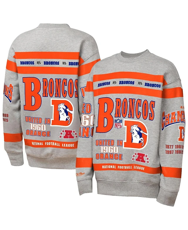 Mitchell & Ness Big Boys and Girls Gray Denver Broncos Throwback All-Over Print Fleece Sweatshirt
