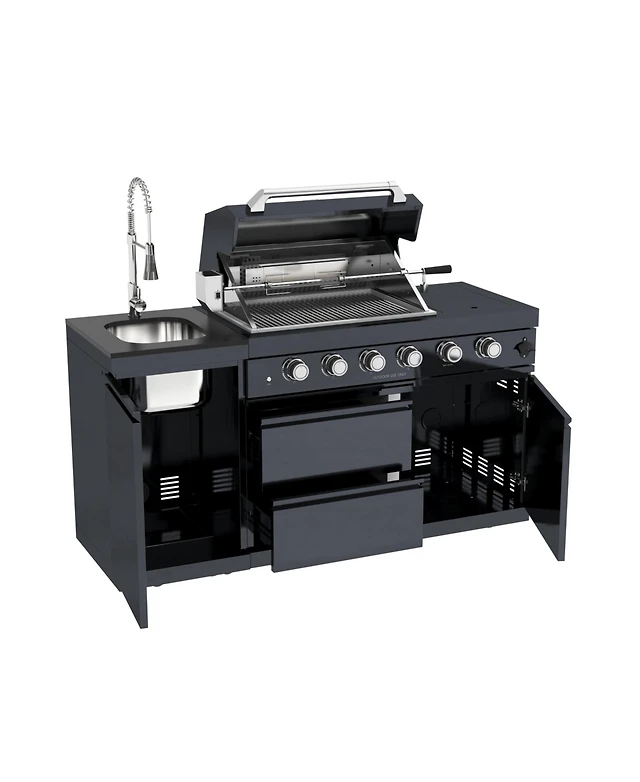 Mondawe 6-Burner Outdoor Kitchen Island Grill Set with Refrigerator, Sink & Granite Tops