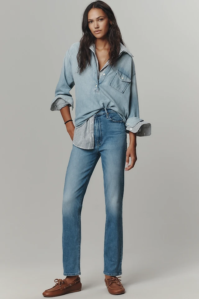 MOTHER The Dazzler Mid-Rise Ankle Straight-Leg Jeans