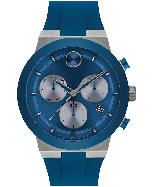 Movado Men's Bold Fusion Swiss Quartz Chrono Blue Silicone Watch 44.50mm