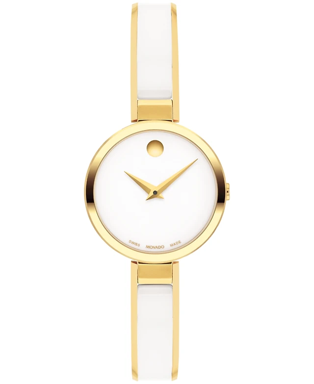 Movado Women's Moda Swiss Quartz White Ceramic Yellow Pvd Bangle Watch 24mm