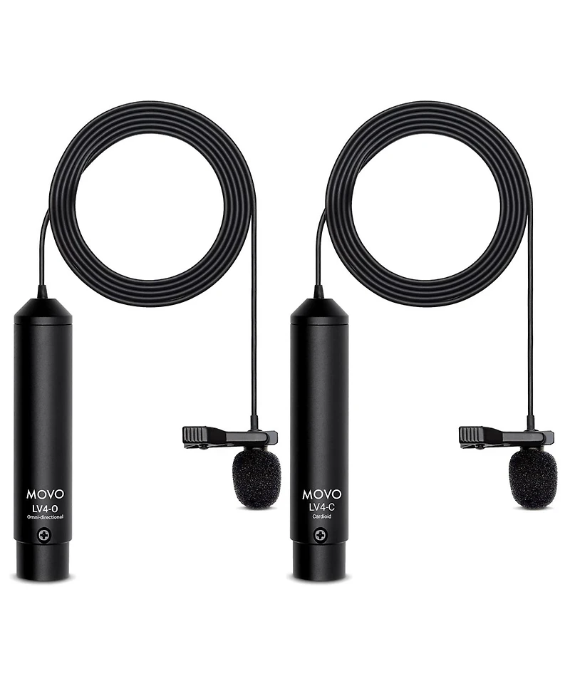 Bring professional grade audio to your next video shoot, interview, or podcast recording with the dual mic Movo LV4 Xlr Lavalier Lapel Microphone Interview Kit. Youll be ready to record in any situation with both an omnidirectional lapel mic for optimizing pickup range and cardioid capsule mic for eliminating unwanted noise. Both microphone connect via Xlr to any device that supports 48V phantom power and require no batteries.With wide frequency spectrum and high signal-to-noise ratio, these pro grade lav mics will give you rich, crystal clear sound within minimal noise.Specifications Capsule Size: 6mm Frequency Response: 35-18KHz +/-3dBMax Spl: 120 dBSensitivity: -38dB +/-3dB / 0dB=1V/Pa, 1kHzOutput Impedance: 200 ohmsPower Requirement: 48V Phantom PowerSignal-to-Noise Ratio: 78 dB Connector: Xlr Cord length: 6-footSignal-to-Noise Ratio: 78 dBConnector: XLRCord length: 6-foot