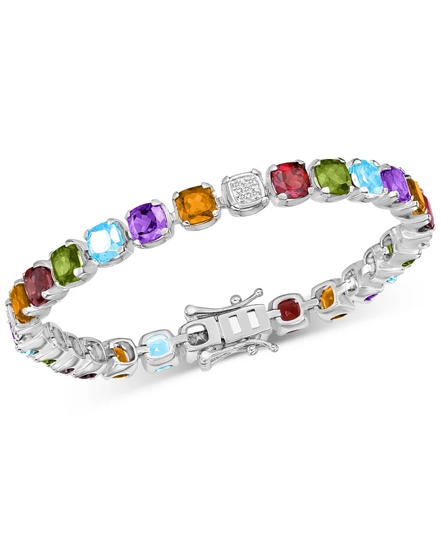 Multi-Gemstone (14-1/2 ct. t.w.) & Diamond Cluster (1/8 ct. t.w.) Cushion Tennis Bracelet in Sterling Silver