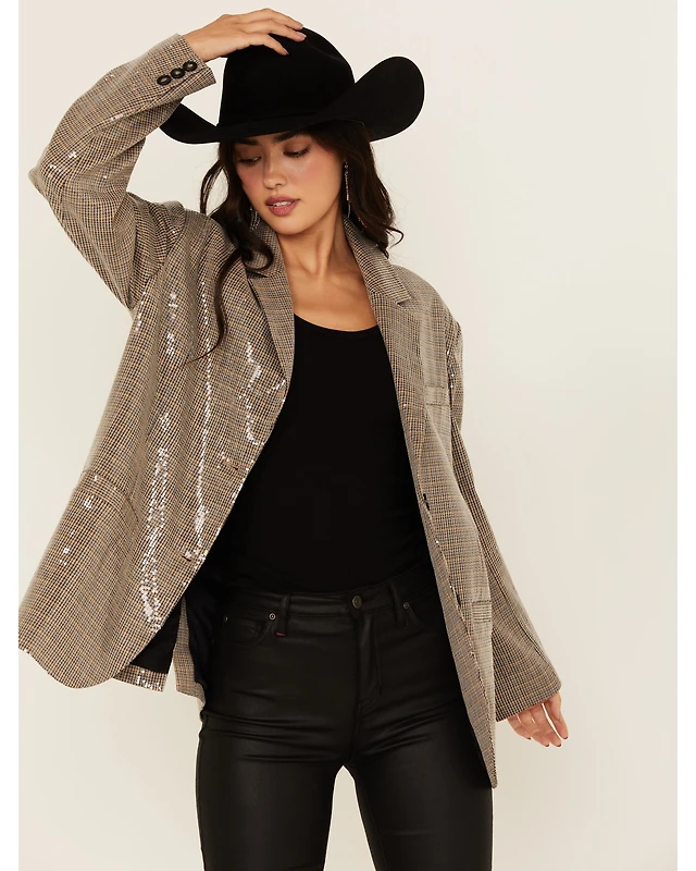 Mystree Women's Plaid Print Sequin Blazer