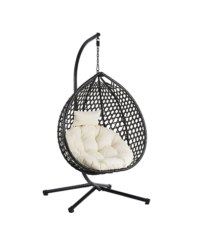 Merrick Lane Riley Foldable Woven Hanging Egg Chair With Removable Cushion And Stand For Indoor And Outdoor Use
