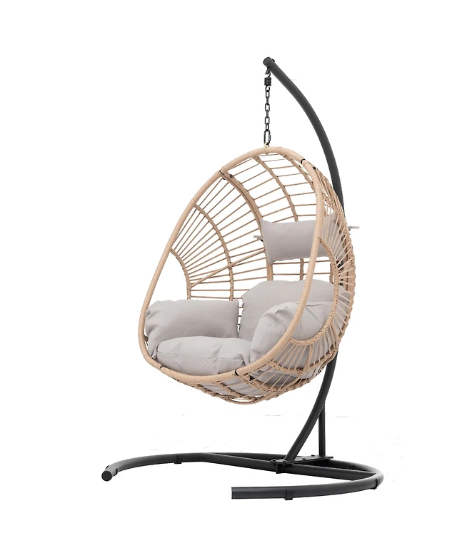 Natural Wicker Egg Swing Chair with Beige Cushion for Indoor and Outdoor Use