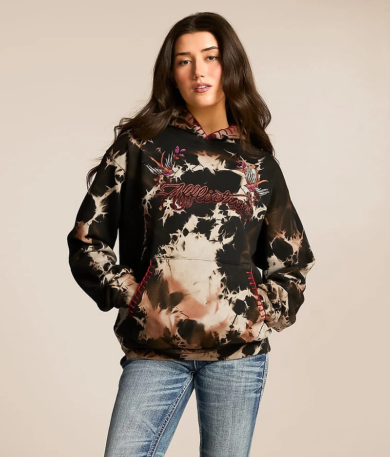 Black Label Series Rhinestone graphic crystal wash fleece lined sweatshirt Front pouch pocket Bust measures 44" on size small Body length 25" on size small