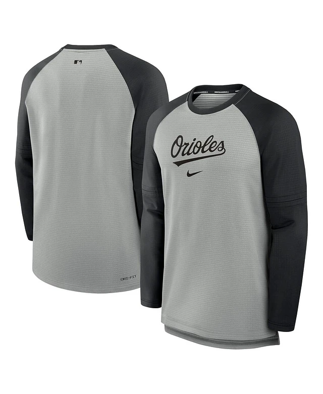 Nike Men's Heather Gray/Black Baltimore Orioles Authentic Collection Game Time Raglan Performance Long Sleeve T-Shirt