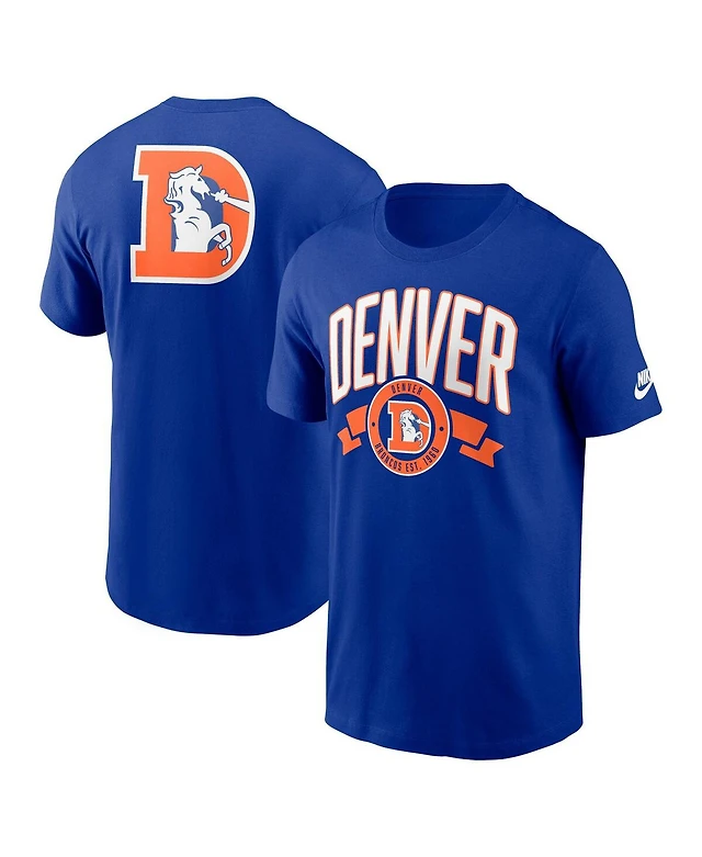 Nike Men's Royal Denver Broncos Rewind Front and Back Hit Essential T-Shirt