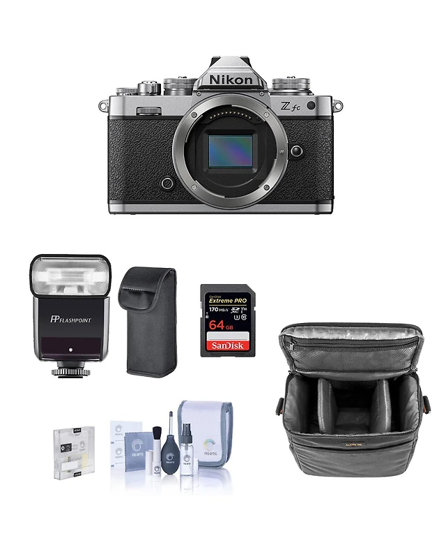 Nikon Z fc Dx-Format Mirrorless Camera Bundle with Flashpoint Zoom-Mini Ttl R2 Flash, 64GB Sd Card, Bag, Screen Protector, Cleaning Kit
