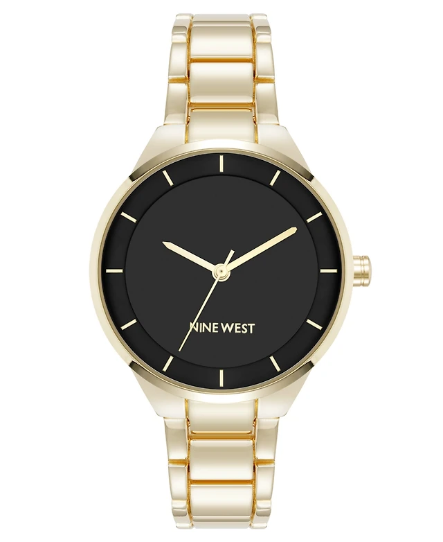 Nine West Women's Quartz Black and Gold-Tone Metal Alloy Watch, 34mm