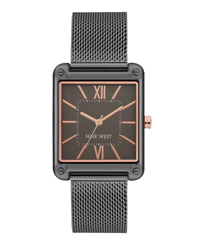 Nine West Women's Quartz Rectangular Dark Gray Stainless Steel Mesh Band Watch, 29mm