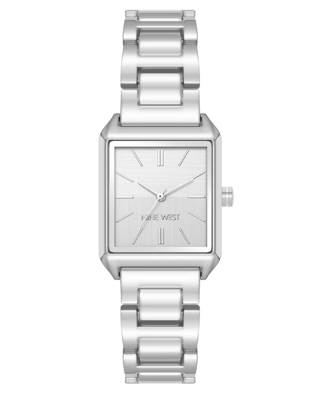 Nine West Women's Quartz Rectangular Silver-Tone Metal Alloy Bracelet Watch, 24mm
