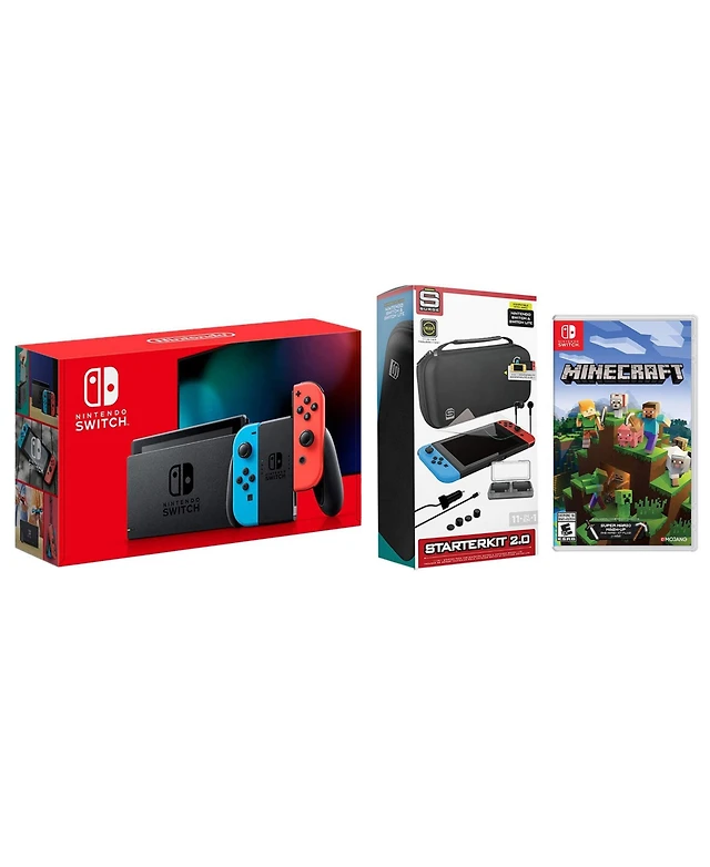 Nintendo Switch 32GB Console Neon Red/Blue Joy-Con Bundle with Surge 11-In-1 Accessory Starter Pack and Minecraft