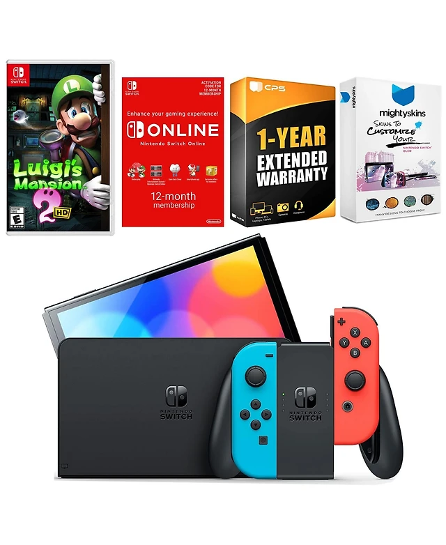 Nintendo Switch Neon Red & Blue Oled Console with Luigi s Mansion 2 Hd, Nso 12 Month Family Membership