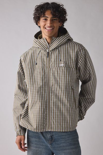 Allover pattern jacket by OBEY. Laminated shell jacket with an adjustable hood, zip hand pockets and a two-way zip closure front. Includes elastic trims and an adjustable bungee at the hem. Cool weather essential jacket to layer over long sleeve tees or sweatshirts, ready to pair with jeans for a laidback casual look.