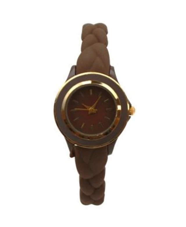 Olivia Pratt Brown Braided Silicone Band Women Watch