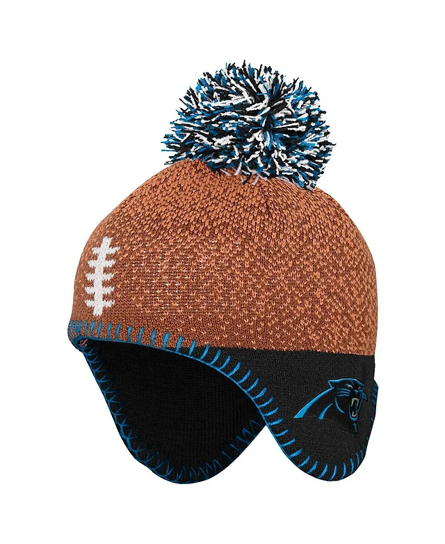 Outerstuff Baby Boys and Girls Brown Carolina Panthers Football Head Knit Hat with Pom