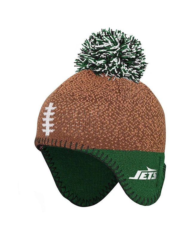 Outerstuff Baby Boys and Girls Brown New York Jets Football Head Knit with Pom Hat