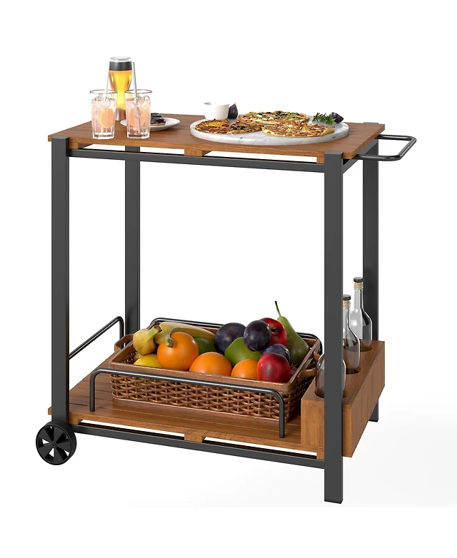 Outsunny Acacia Wood Outdoor Bar Cart, 2-Tier Outdoor Serving Cart,