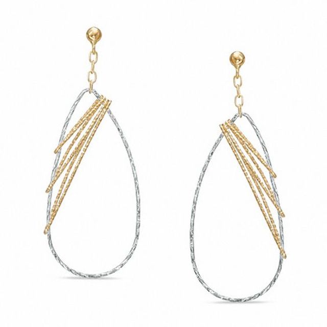 Oro Diamante™ Diamond-Cut Layered Elongated Oval Drop Earrings in 14K Two-Tone Gold