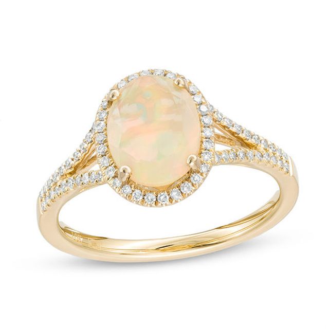 Oval Opal and 1/5 CT. T.w. Diamond Frame Split Shank Ring in 10K Gold