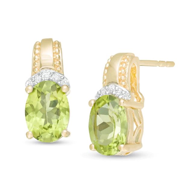 Oval Peridot and 1/20 CT. T.w. Diamond Beaded Drop Earrings in 10K Gold