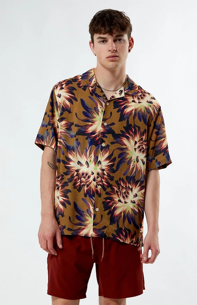 Pacsun Green Floral Embroidered Oversized Resort Camp Shirt