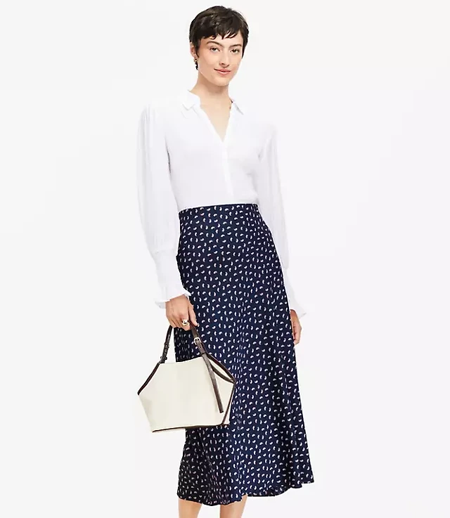 Petite LOFT Versa Shimmer Bias Midi Skirt