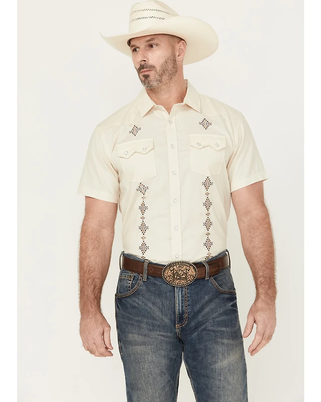 Panhandle Men's Southwestern Embroidered Short Sleeve Pearl Snap Western Shirt