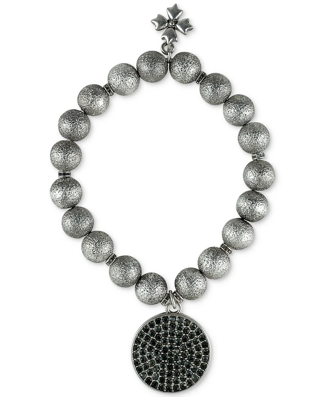 Patricia Nash Silver-Tone Dark Crystal Disc Beaded Stretch Bracelet