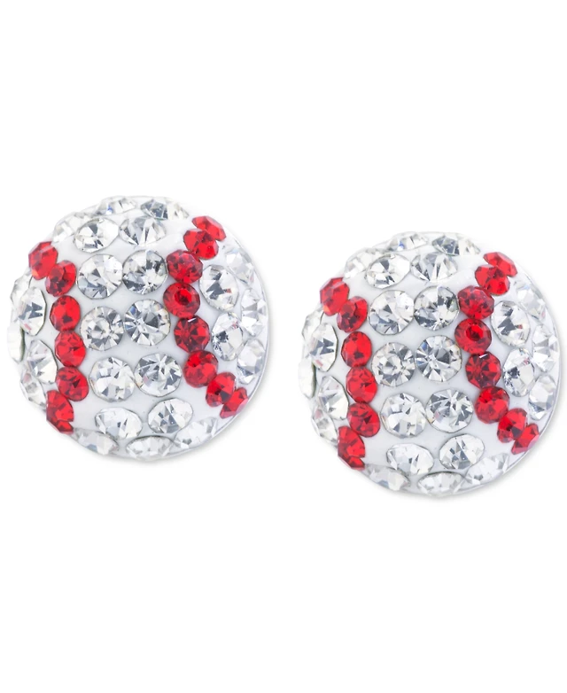 Crystal Pave Football Inspired Stud Earrings in Sterling Silver
