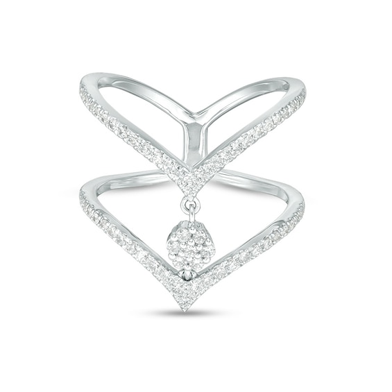 Previously Owned - 3/8 CT. T.w. Multi-Diamond Double Chevron Open Shank Ring in 10K White Gold - Size 7