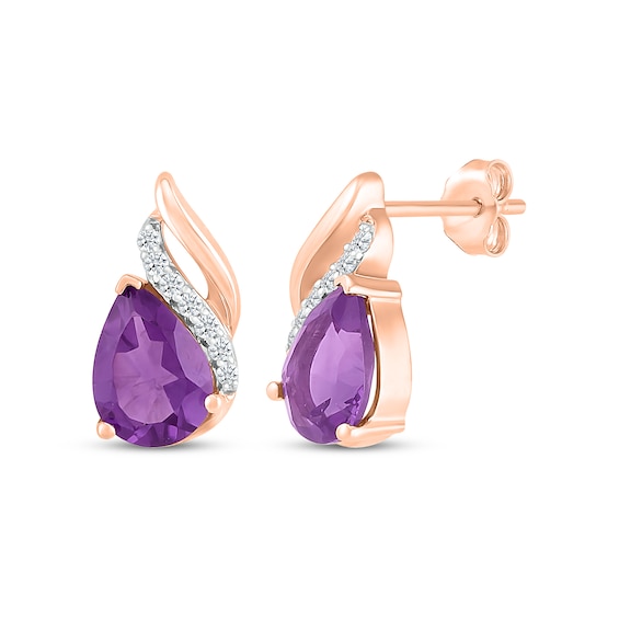 Pear-Shaped Amethyst & Diamond Swirl Stud Earrings 1/15 ct tw 10K Rose Gold