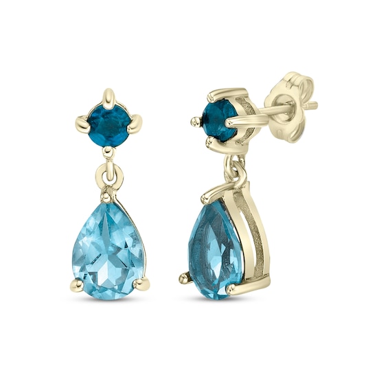 Round-Cut London Blue Topaz & Pear-Shaped Swiss Blue Topaz Drop Earrings 10K Yellow Gold