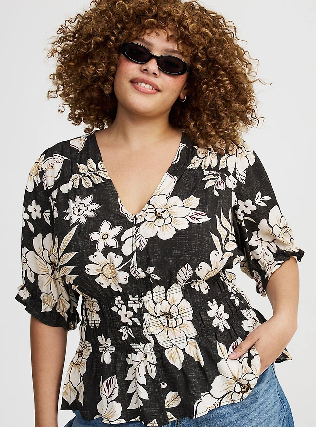 Peplum Challis Sweetheart Flutter Sleeve Top
