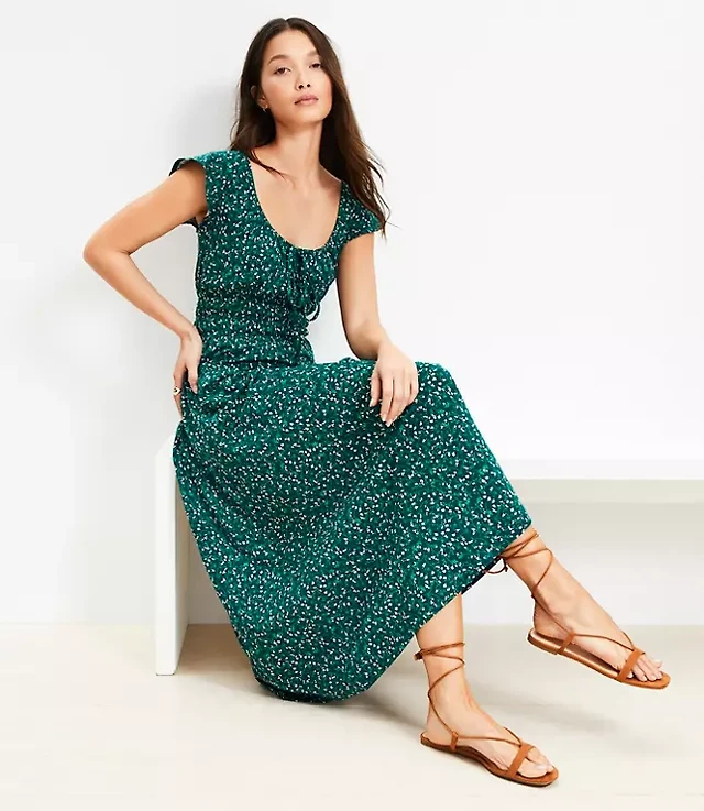 Floral Smocked Flutter Midi Dress