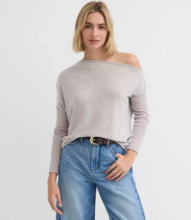 LOFT Versa Seasonless Stretch Off The Shoulder Top Heather