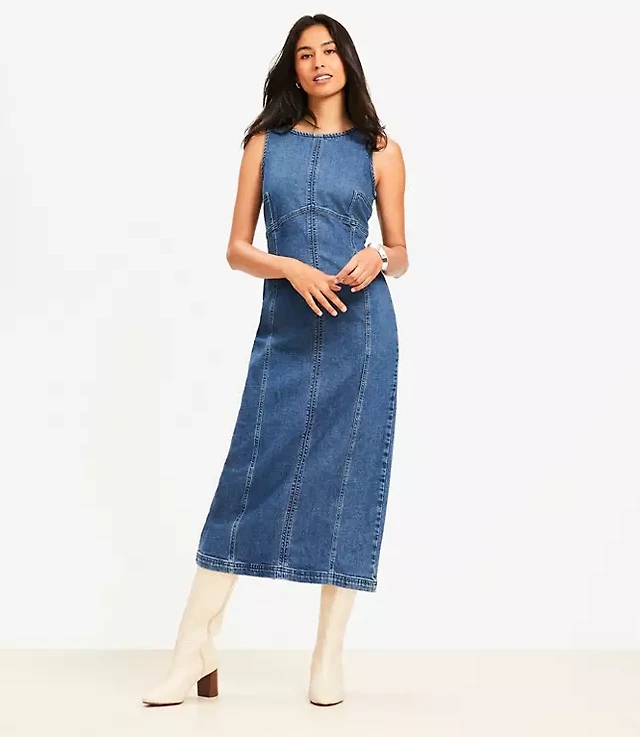Petite Seamed Denim Midi Dress in Classic Mid Wash