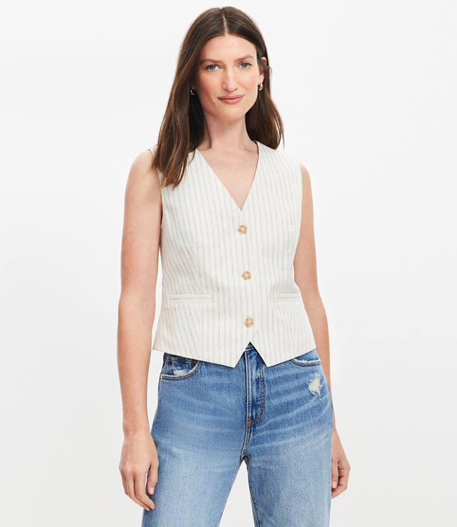 Petite Striped Cotton Linen Pocket Vest in Bloomington, MN