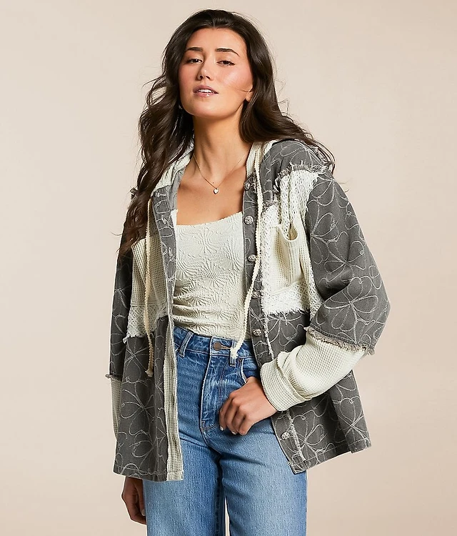 Pieced Floral Hooded Shacket