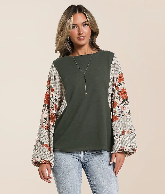 Pieced Floral Henley