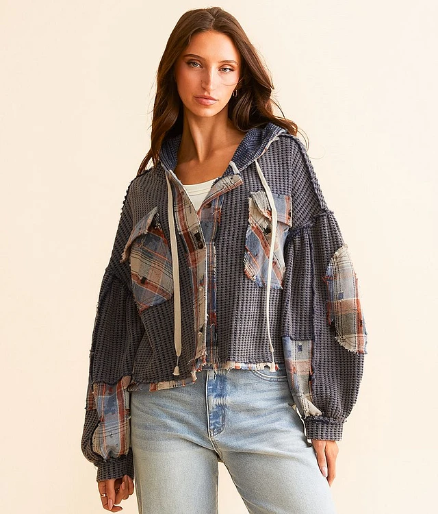 Pieced Plaid Boyfriend Hooded Shacket