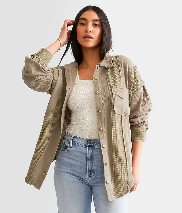 Pieced Waffle Knit Boyfriend Shirt in Bloomington, MN