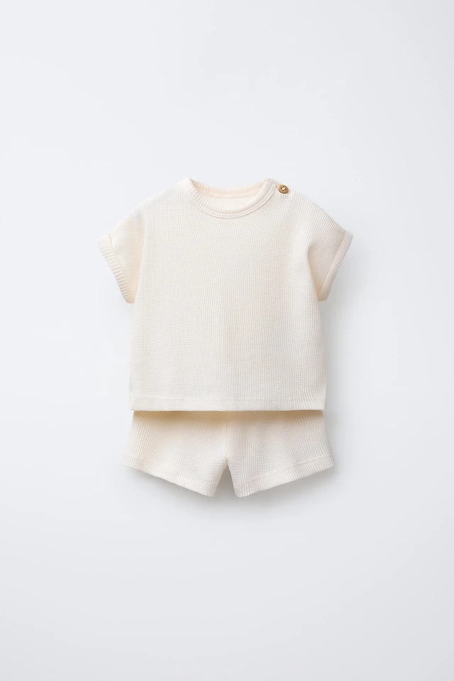 PLAIN WAFFLE T-SHIRT AND BERMUDA SET