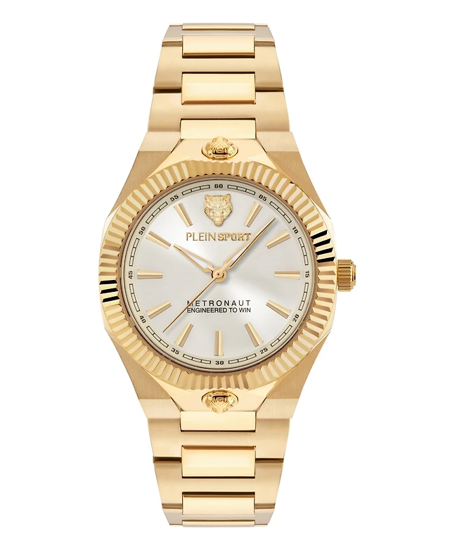 Plein Sport Women's Metronaut Three Hand Quartz Ion Plated Yellow Gold Bracelet Watch, 36mm