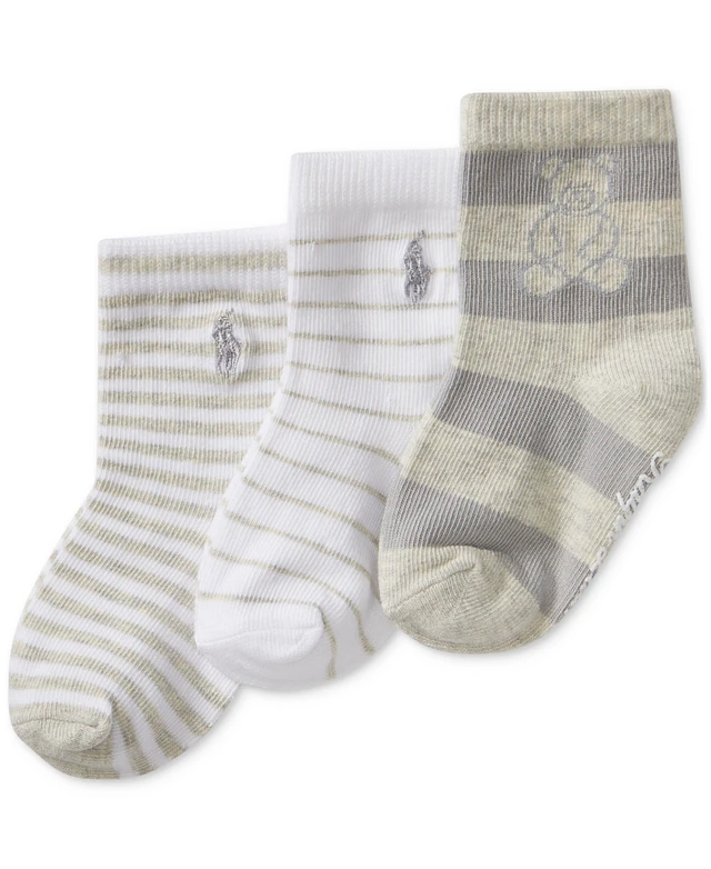Polo Ralph Lauren Baby Striped Bear Socks, Pack of 3