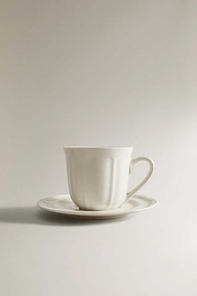 COFFEE CUP AND PORCELAIN SAUCER WITH RAISED DESIGN